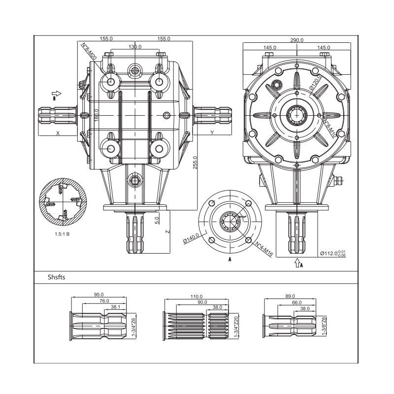 KLF-GC290は、ストロークラッシャーや農業フィルムリサイクルマシンなど、さまざまな種類の農業機械装置に適応できるさまざまなトランスミッション比を提供しています。グリーソンベベルギアは高精度で製造されており、メッシュの精度が高く、伝送損失が最小限、エネルギー移動の効率が高くなります。この製品は、一方向クラッチメカニズムで設計されています。操作中、カッターシャフトが高速で走っているとき、トラクターが突然電源入力を停止すると、カッターシャフトの慣性が大きすぎる可能性があります。一方向のクラッチは、この突然の停止によるギアとシャフトを損傷から効果的に保護します。