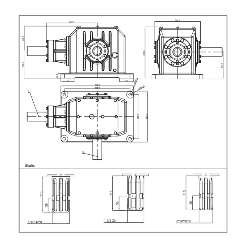 ギアボックスは、マシンまたはトラクターのフロント垂直ボックスを通って電力を入力し、回転速度を上げ、送信シャフトとベルトを通って砕いたカッターシャフトに電力を送信します。ベーラーマシンは収穫ストローを押しつぶし、その後、リサイクル、梱包、再利用、またはフィールドに戻します。このタイプのギアボックスは、小さな正方形のベーラー、ほこりを除去する小さな四角いベーラー、丸いベーラー、ストローリターンマシンなど、さまざまな機器の粉砕装置で使用されます。