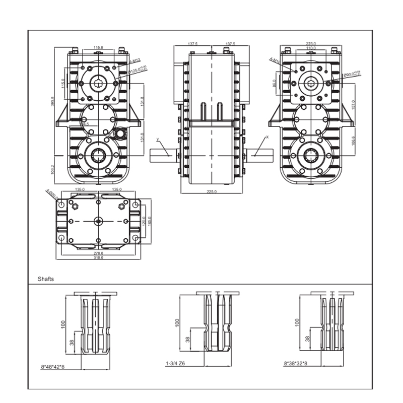 このギアボックスは、ダストの除去と練習の正方形のベーラーの前面にあるトラクター電源入力に使用されます。ギアボックスを介して、電源は2つの油圧ポンプと砕石装置に送信されます。油圧ポンプは、機械の動作要件を完了するために、油圧パワーをマシンの他の電力部分に伝達します。